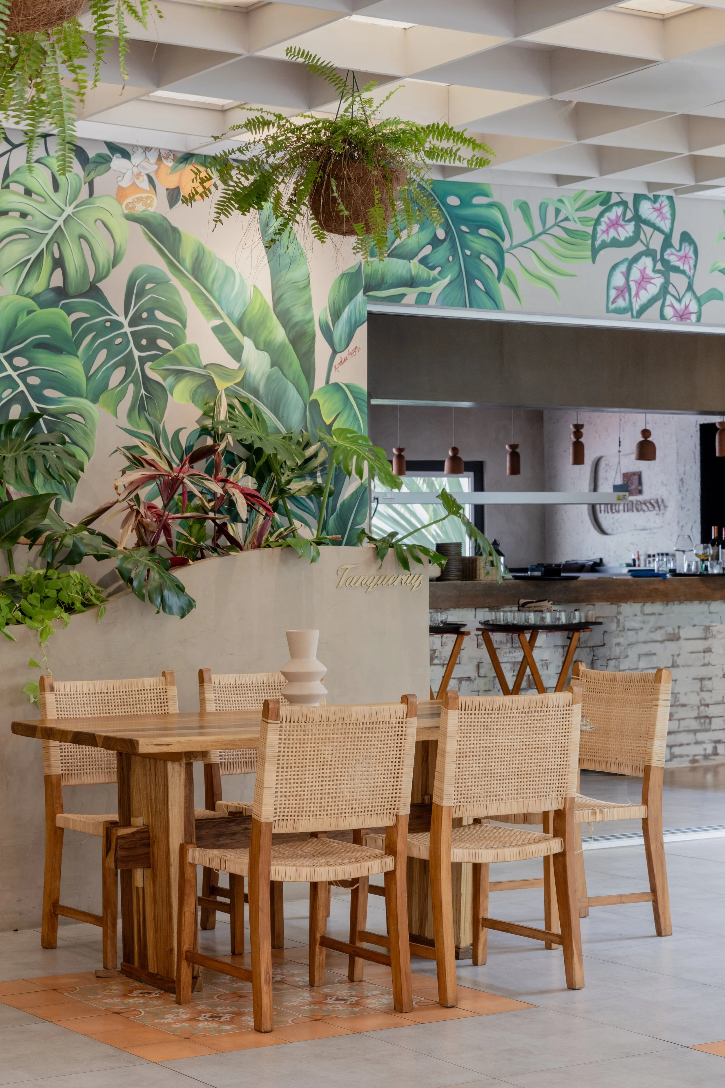 Transforming a house that was previously occupied by another restaurant into Mia, we drew inspiration from the relaxed, earthy aesthetic of Tulum. To achieve this, we integrated natural fibers such as rope, bamboo, reed, and driftwood, creating an immersive environment that feels both raw and refined.